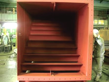角型、丸型、角丸型、直管、エルボ・ホッパー・S 管等の異型管、溶接グレード、塗装等、あらゆる形状・仕様にお応え出来る製品作りを目指しています。また、耐圧・漏洩、PT・UT 等の各種検査や検査成績表作成にもお応えします。比較的薄板の鋼板ダクトには、歪の問題が常にありますが、永年のノウハウで、この歪を最小限に抑えます。