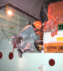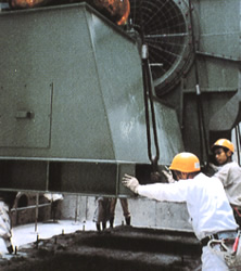 給気・排気処理装置はメーカーとして実施設計を行い、ダクト全般(ハゼ折り・鋼板)・処理装置・架台・サポートなどを原子力製品認定工場である大阪工場で製造、各原子力発電所現場において、ファン・冷凍機等の機器の設置を含めた、換気空調設備全般の施工を行っております。また、火力発電所では、集塵装置の設定を行っております。定期検査では、換気空調関連機器の分解点検も施工範囲に入ります。