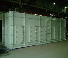 発電所における発電所対応型外気処理装置は、メーカーとしての歴史も長く、時代と共に変化する構造(パネル型から躯体利用型)を熟知しています。設計・製造・施工のラインで、様々な形状・容量にお応えします。分割タイプは現場施工のスムーズさを考慮し、仮組検査を実施します。
